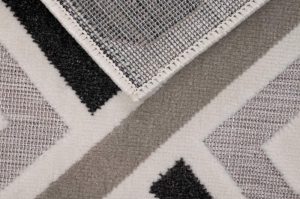 Wzór złożony z prostokątów w różnych odcieniach szarości tworzy kompozycję przypominającą nowoczesną fasadę budynku – strukturalną, elegancką i pełną głębi. Rozmiar 120x170cm to idealne proporcje dla średniej wielkości przestrzeni, pozwalające na stworzenie wyrazistej strefy relaksu.
