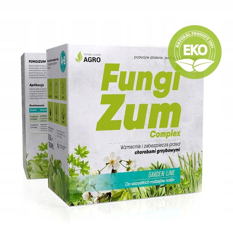 Unikatowy zestaw dwóch preparatów organicznych zapewniających wzmocnienie roślin oraz ich wielostopniowe zabezpieczenie przed chorobami grzybowymi, w tym: mączniaki, parchy, szara pleśń, a nawet kiła kapusty. FungiZum Complex można stosować również w rolnictwie ekologicznym.
