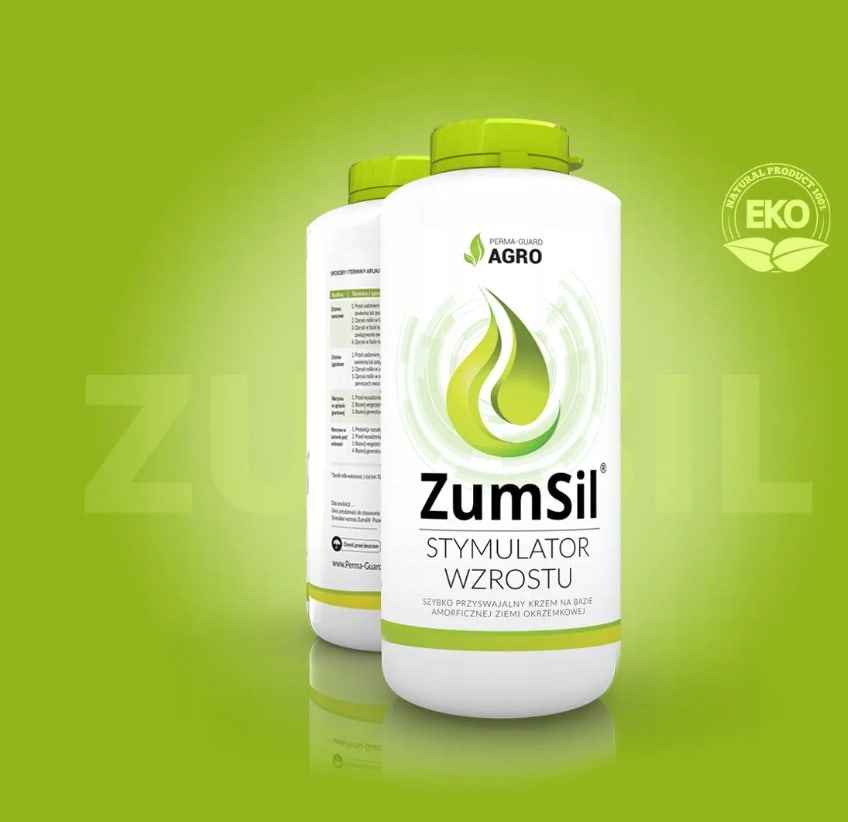 ZumSil, to opatentowany stymulator wzrostu zawierający kwas ortokrzemowy pozyskiwany z amorficznej ziemi okrzemkowej. To najlepiej i najszybciej przyswajalna forma krzemu, którą można stosować interwencyjnie. Jest szybko pobierany przez liście, jak i korzenie rośliny i wyróżnia się wysoką zawartością krzemu (39,3 g / 100 ml).