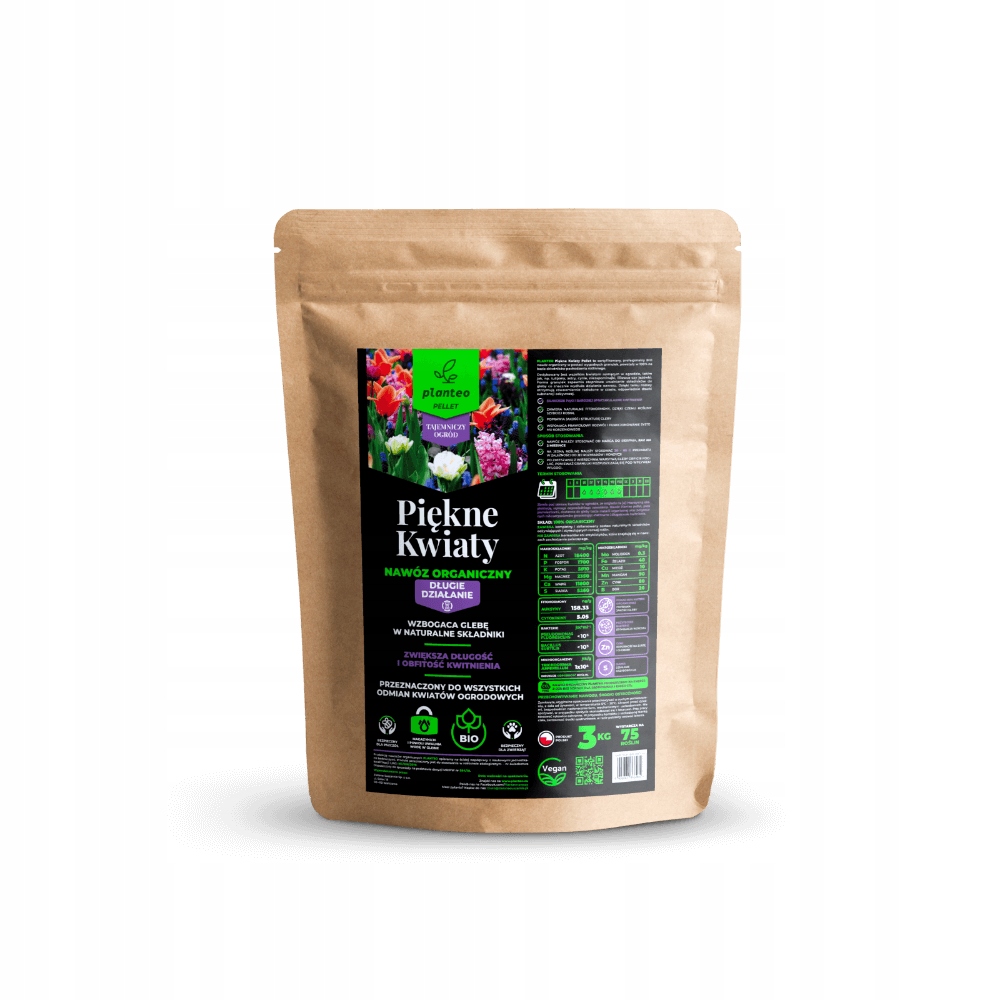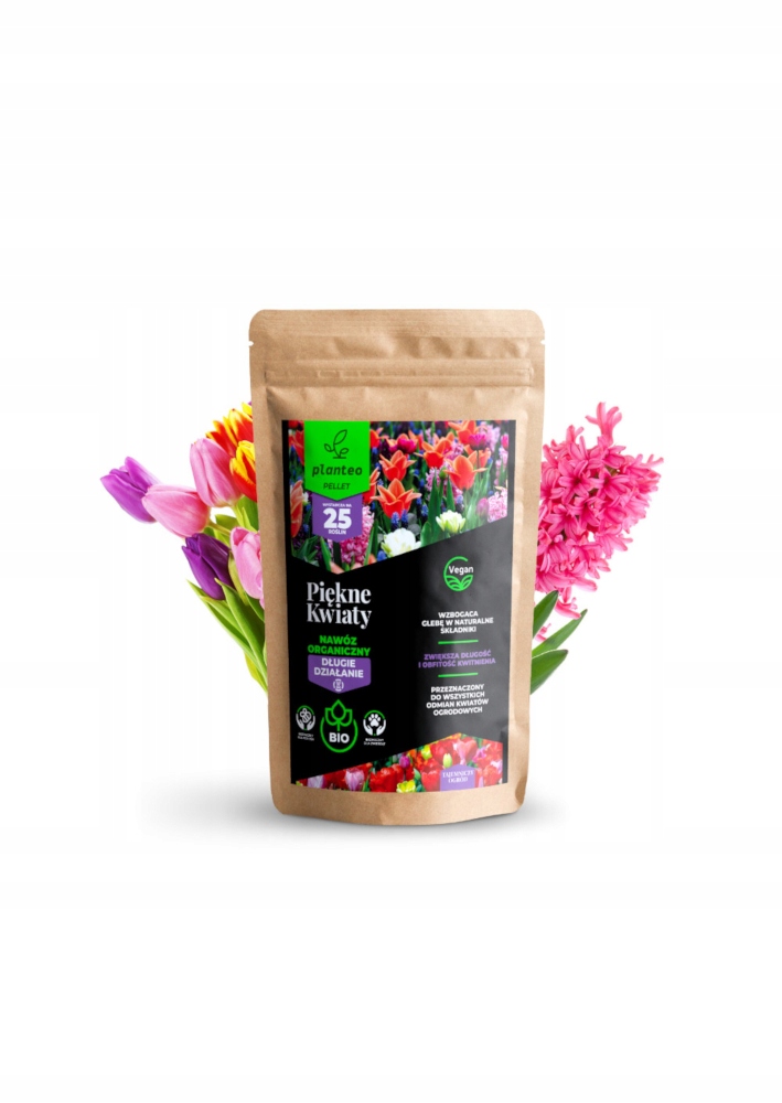Planteo Piękne kwiaty pellet jako nawóz organiczny wzbogaca glebę w szereg pierwiastków dedykowanych pod uprawę kwiatów rosnących w ogrodzie. Zawarte w jego składzie azot, magnez i żelazo odpowiadają, m.in. za proces fotosyntezy, a co za tym idzie, za prawidłowy rozwój roślin.