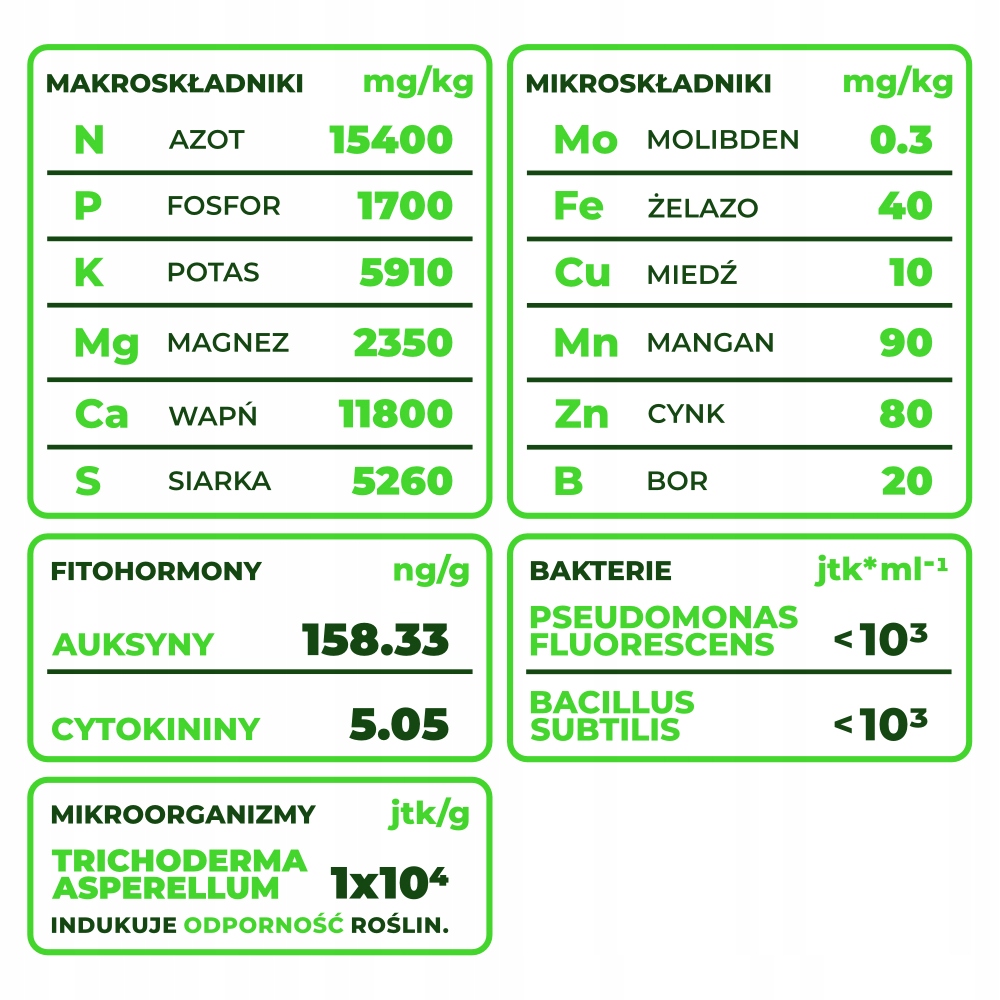 Skład nawozów oparty jest w 100% o biomasę roślinną.